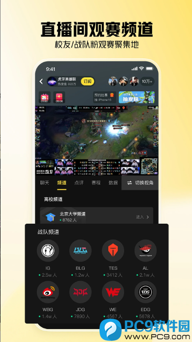 丰富内容:覆盖热门游戏如英雄联盟、王者荣耀、绝地求生等,以及电竞赛事、娱乐直播等。