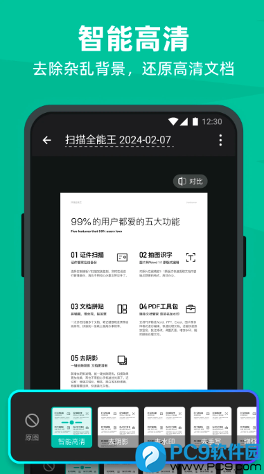 智能扫描:自动识别文档、去除杂乱背景,生成高清PDF或图片。